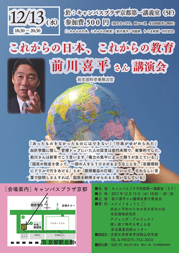 2017年12月13日前川喜平講演会 ユナイトきょうと賛同